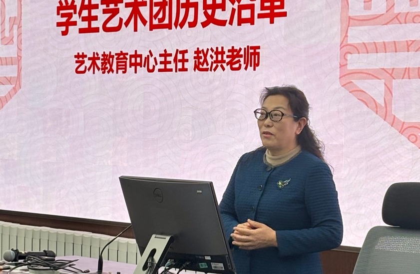刘恺东、刘宇尘、乔向荃介绍学生艺术团基本情况
