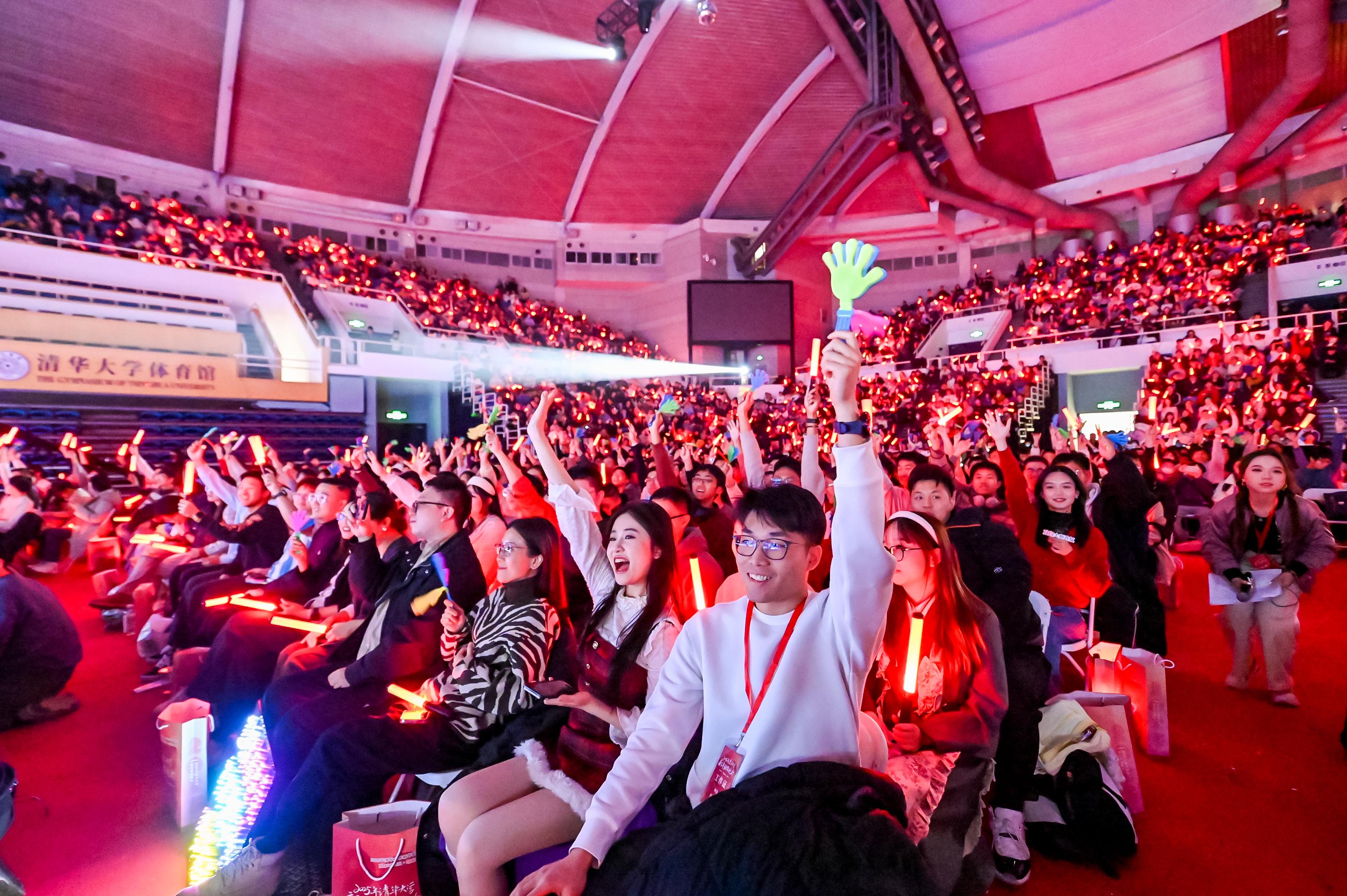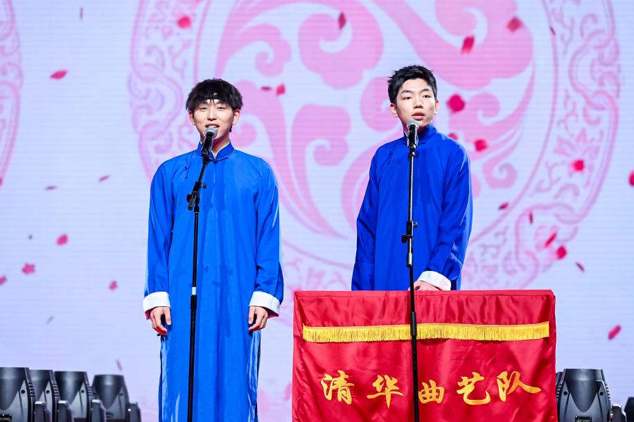 学生艺术团民乐队的《山语·幻》和《花好月圆》以热情欢快的旋律和流畅舒缓的节奏引人入胜,让观众沉浸在浓厚的民乐氛围中;学生艺术团国标队、啦啦操代表队和学生街舞社联合呈现的舞蹈串烧,展现了青春的活力四射,用生生不息的激情迎接新的一年;学生说唱社带来的原创说唱歌曲《我们的Z世代》以青春的热情、积极的态度,展现了清华学子昂扬向上的精神风貌;魔术节目《新年祝福》带来跨年的惊喜与激动,将现场气氛推向高潮;学生艺术团曲艺队带来的相声节目《我的清小搭》让在场观众忍俊不禁,在欢笑中展现了AI赋能教育教学的最新成果。