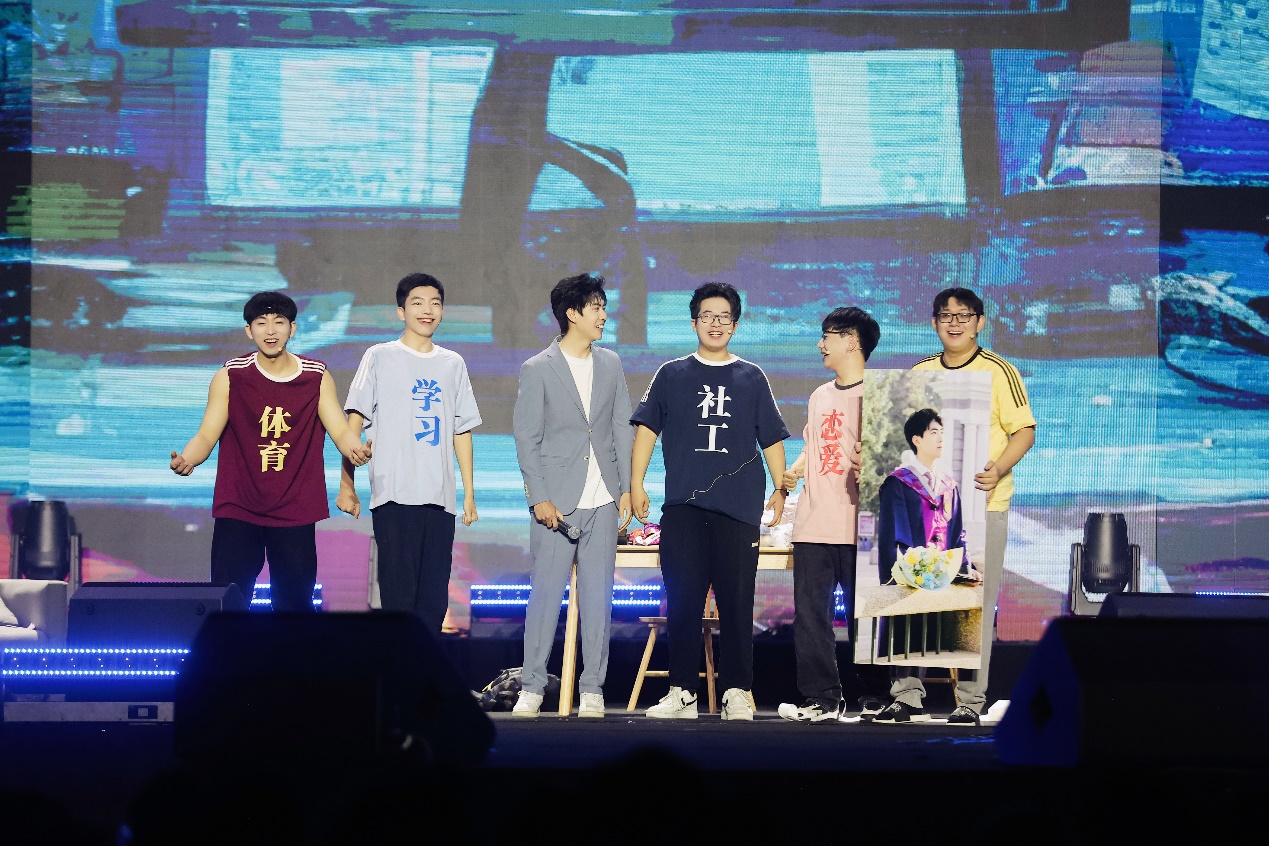 “壹壹不舍”篇章在校友宿涵激昂的《水木道》说唱中热烈开场。小品《论文交稿的前一夜》用诙谐又真实的笔触展现出清华学子的成长历程。首届“最美劳动者”清华校园服务之星从幕后来到台前,为毕业生们送上质朴而令人动容的美好祝福。原创歌曲《星星散落后的我们》唱出对未来的期许,即便毕业散作满天星,同学们也终将绽放出属于自己的光彩。魔术《魔法毕设》将魔术师毕业设计的神奇过程搬上舞台,奇幻的表演和精彩的互动引得观众掌声连连。