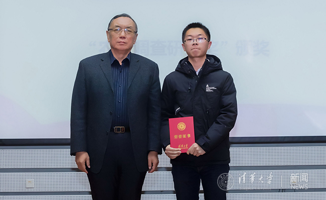 清华团委副书记铁强颁发“农村调查优秀图片奖”。欧平平 摄