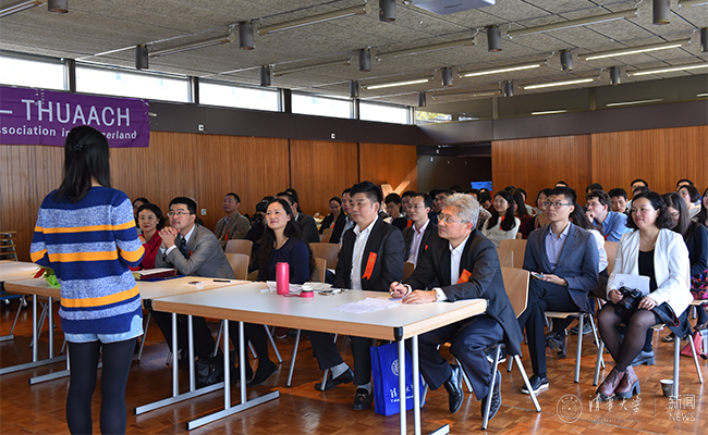 蒋晓茗在致辞中希望清华校友可以关注祖国的热点问题,为祖国更好的发展出谋划策;引领海外学子,发扬爱国精神;向瑞士华人群体提供力所能及的帮助。