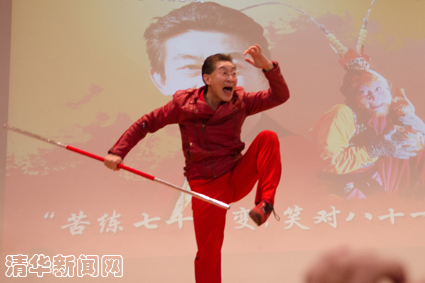 清华新闻网3月26日电(研通社记者 倪 鲁)3月23日晚,建馆报告厅人潮涌动,一个在中国家喻户晓的经典形象吸引了众多清华学子驻足围观。86版《西游记》主角孙悟空的扮演者章金莱(艺名六小龄童)于当晚做客清华,与大家面对面分享“苦练七十二变,笑对八十一难”的西游记人生哲理。
