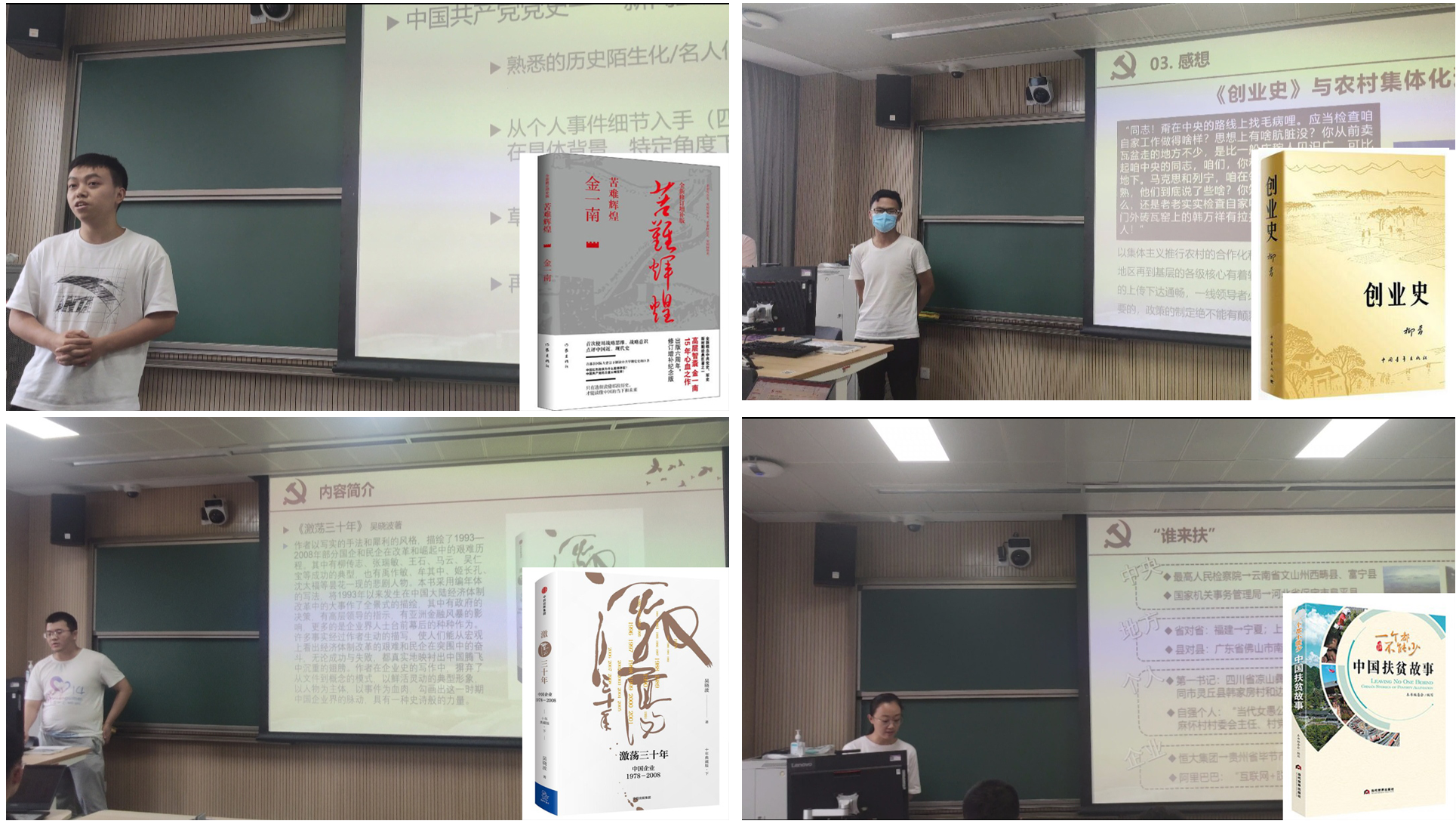 电机系电硕201党支部与电力系统所第二党支部联合举办“读书宣讲会”和“党史知识竞赛”,支部成员通过阅读《苦难辉煌》《创业史》《激荡三十年》和《中国扶贫故事》四本书籍集中学习宣讲,从历史中汲取继续奋进的智慧和力量。电机系2020级硕士生程淼说:“在读书宣讲的过程中,我更深刻地理解了党和国家消灭贫穷的伟大壮举。消灭贫穷远远不是终点,共同富裕才是中国特色社会主义的根本原则和价值追求。我们这一代青年人要牢记习近平总书记的殷殷嘱托,肩负历史使命、坚定前进信心,成为堪当民族复兴重任的时代新人。”