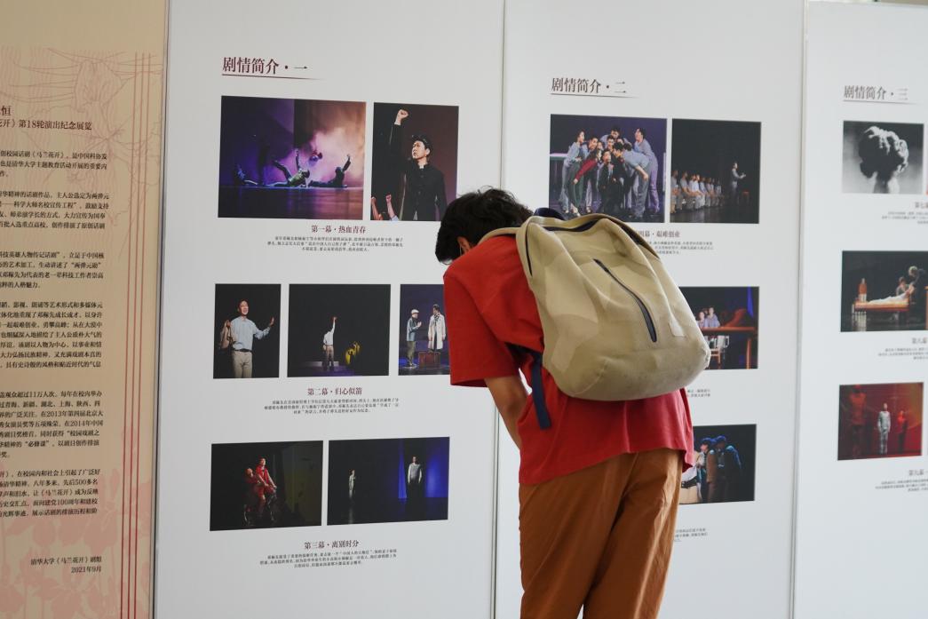 立足建党百年重大历史契机,剧组对剧目进行了全过程的策划与展示。在新清华学堂一层环廊观众入口处特别布设了专题展览,详细介绍了新中国核事业、邓稼先生平事迹、剧目排演历程和感人故事、马兰花开党支部建设经验等内容。为了更好地讲述邓稼先的事迹,本轮演出更新了开篇视频,优化了部分多媒体、音频、舞美方案,在部分篇章创新了呈现形式,强化了观演体验。此外,还设置了观众互动区,鼓励班团集体将观剧、看展、互动留言、合影等内容作为班团主题活动的一部分,增强观众体验感及认同感,深化思政教育与美育深度融合的育人实效。本轮演出恰逢杨振宁先生百岁生日,杨振宁深情回应邓稼先“但愿人长久,千里共同途”的嘱望,也为《马兰花开》的再度绽放增添了浓墨重彩的一笔。
