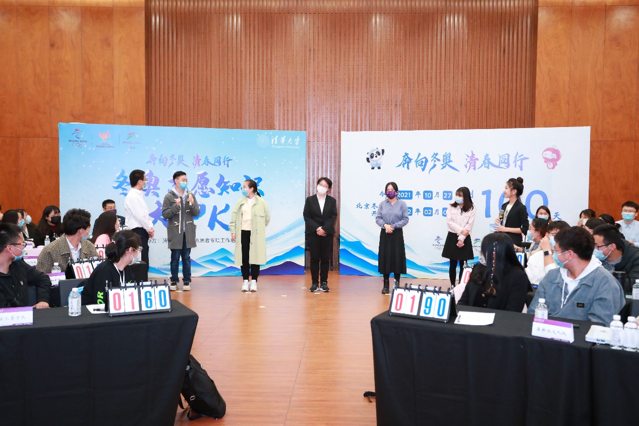 校团委书记张婷在致辞中表示,北京2022年冬季奥运会已进入全力冲刺、全面就绪、决战决胜的最后一百天,迎战冬奥的预备号已经吹响,希望在场的选手和线上观赛的同学们,能够秉承“无体育,不清华”的理念,积极参与到冰雪活动中,“一起向未来”,共同推动冬季运动向美好未来发展;希望冬奥志愿者弘扬“奉献、友爱、互助、进步”的志愿精神,用微笑和服务,为举办一届“简约、安全、精彩”的奥运盛会作出青年志愿者的贡献,向全世界展现新时代中国青年的风采。