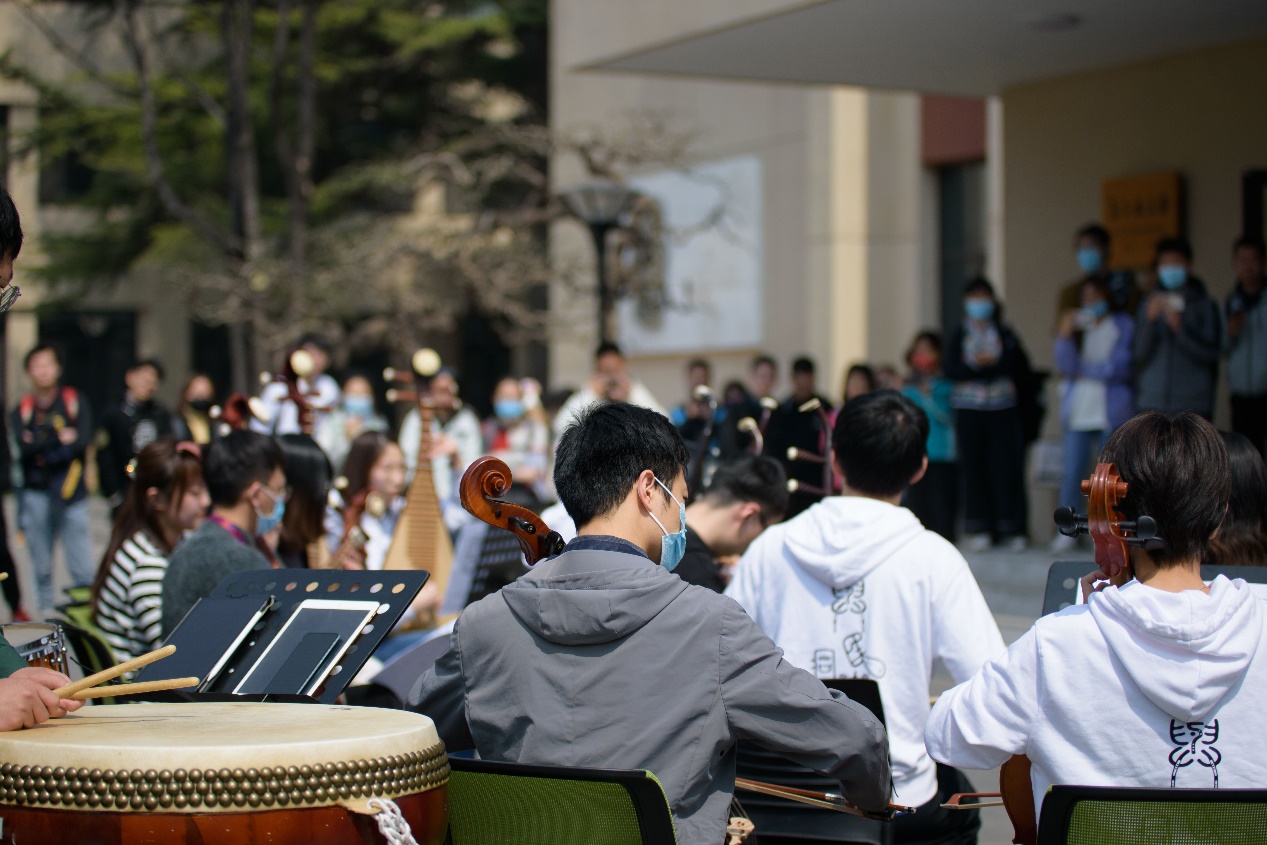4月8日中午,第三教室楼门前响起悠扬的胡琴声,第三场“课间音乐会”精彩亮相。乐曲《查尔达什》热情明快,《送我一支玫瑰花》浪漫灵动,《射雕英雄传》激昂磅礴,学生艺术团民乐队在此次音乐会中以丰富多样的曲目传递积极向上的活力、普及传统民乐的魅力。