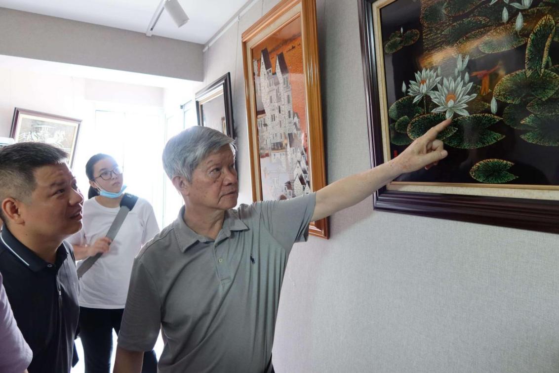 麦秆画非遗传承人沈学章指导支队成员制作麦秆画