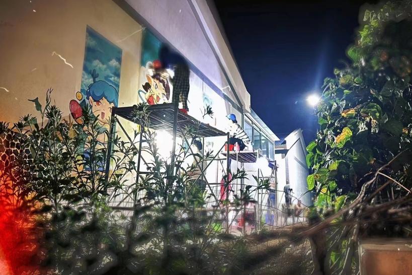 河北孟家庄村对丰富村民业余体育文化生活有着迫切需求,支队成员积极响应,以“全民健身日”为契机,于暑期开展“文明墙绘”工作,将“全民健身”主题与河北承德孟家庄村的五种特产——藏香猪、蘑菇、蜜蜂、刺绣、花朵结合起来,改造村民健身广场墙体,改善村民健身环境,助力“全民健身日”活动推广。美术学院硕士傅千懿说道,“我们的专业是美术,这次能把画室搬到乡村农墙,我感到不负所学。”