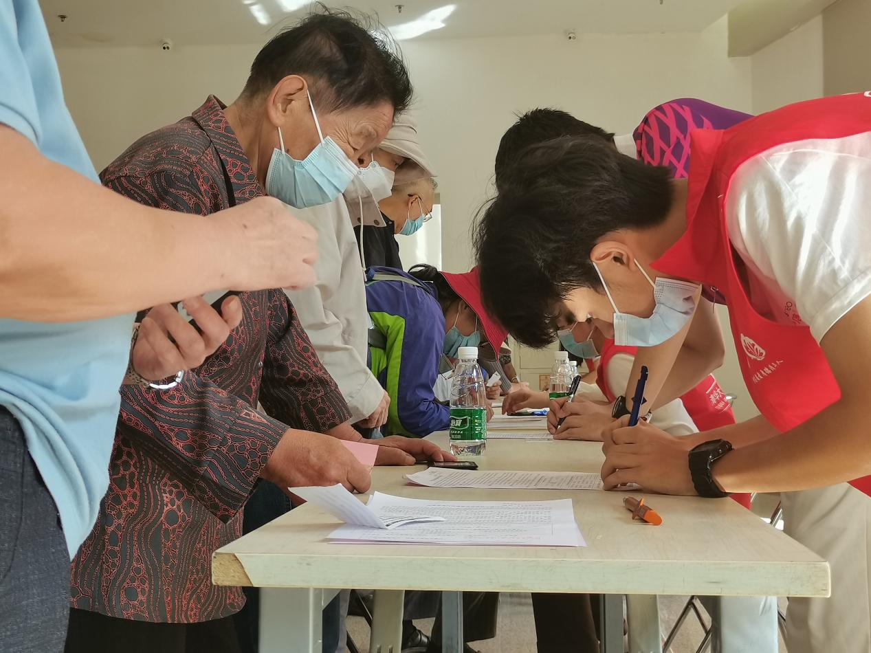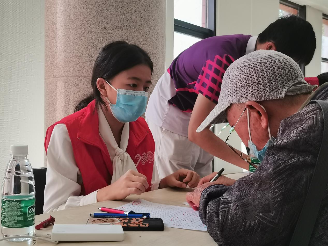 紫荆志愿者主要负责现场秩序维护、信息录入、药盒扫码等工作,各司其职、分工明确。除此之外,志愿者们还配合医护人员做好老人服务保障工作,遇到腿脚不便的老同志立刻主动上前搀扶,为无法自行填写流感疫苗知情同意书的老人代填信息,耐心解答老同志们的问题。工作内容虽然不难,但在人流量大时工作量也不小。来自土木系的2021级本科生李林晟说:“有时候上一份还没填好,就需要帮助填写下一份,身上被汗水打湿,讲话也讲到口干舌燥,脑子都快转不过来了。但每当听见老人们说‘幸好有你们在这儿’‘谢谢你们’时,我感觉一切汗水与疲惫都烟消云散,自豪感与收获感油然而生。希望日后还能参加更多敬老爱老的志愿服务活动,发挥自身能力去帮助他人。”