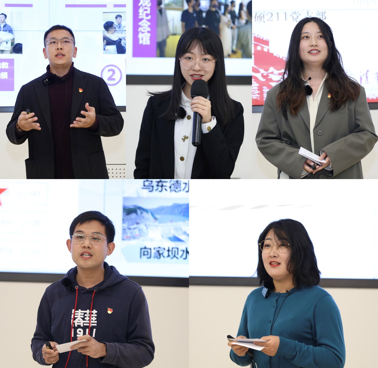 能动系能博212党支部分享成员们深入新疆喀什基层一线了解喀什地区社会风貌,真切感受脱贫攻坚和乡村振兴战略的成效。航院航硕211党支部从井冈山富民安康之路讲到航天强国建设新征程,分享三代清华航空人薪火相传、航空报国的故事。新闻学院新硕211党支部讲述成员们前往硗碛藏族乡,参观红军长征翻越夹金山纪念馆,记录牦牛毛纺织手艺人守护传承藏族文化的动人故事。土水学院水博20第二党支部奔赴白鹤滩水电站,在100万千瓦水轮发电机组的轰鸣中感受新时代大国重器的力量。建筑学院景观研究生党支部讲述成员们前往三江源、成都、钱江源-百山祖、黄河口四地调研学习,见证牧民从放牧者到守护者的转变。