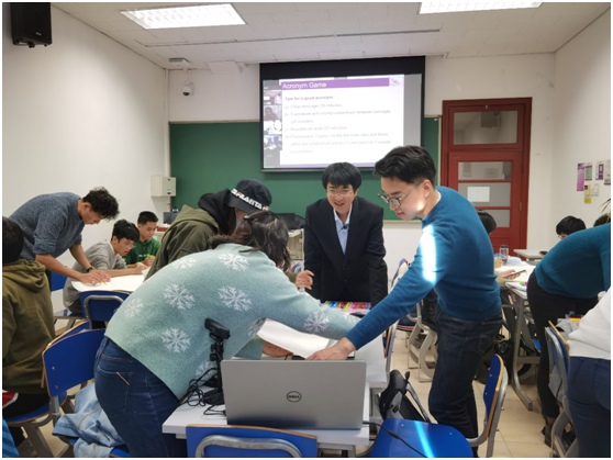 例如,在Concept Map环节中,每组各个成员共同阅读一篇《自然》《科学》正刊精选环境主题文献,在规定时间内讨论梳理主要框架与核心内容,最终以手绘概念框图的形式进行展示与讲解。该课程环节中一方面可使学生掌握快速提取、归纳与总结科学论文的核心内容方法;另一方面,在阅读、讨论和梳理的过程中,学生的英语运用能力、沟通表达能力得到一定的加强。该训练也让同学们建立起了解最新全球科技进展的信心,鼓励大家阅读、思考、实践,用批判性思维去分析、理解文献。
