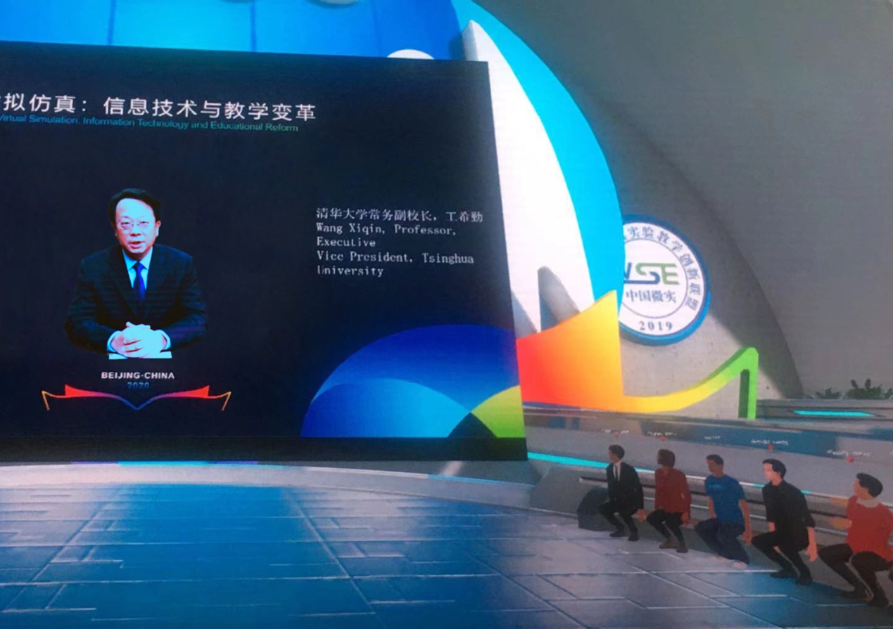 论坛以虚拟会议形式举行,并在李兆基科技大楼数字化发展能力中心设置了现场会议。200位来自全国各高校虚拟仿真实验教学一线的教师和专家远程参加了虚拟会议,另有大量观众观看了网络直播。致辞和报告环节融入了虚拟会议室中,形成三维可互动的虚拟场景,方便观众进行沉浸式体验,充分体现了虚拟仿真再造虚拟世界的力量。