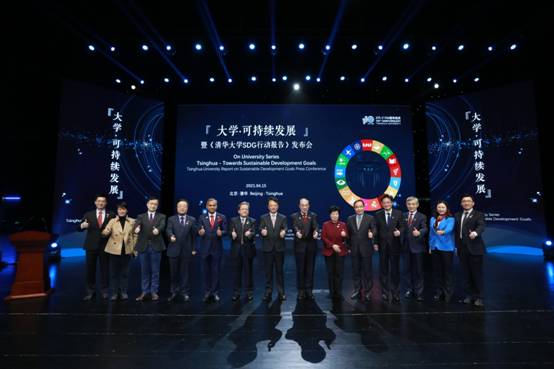 4月15日晚,清华关于SDGs行动的成果数据,穿过线下会场,透过大小屏幕,通过全球双语网络直播,从新清华学堂传播至世界各地。