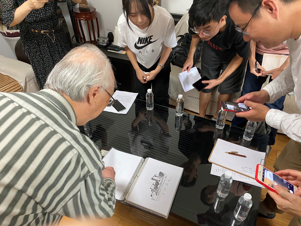 张锦秋(左四)韩骥(左五)与采访同学合影留念