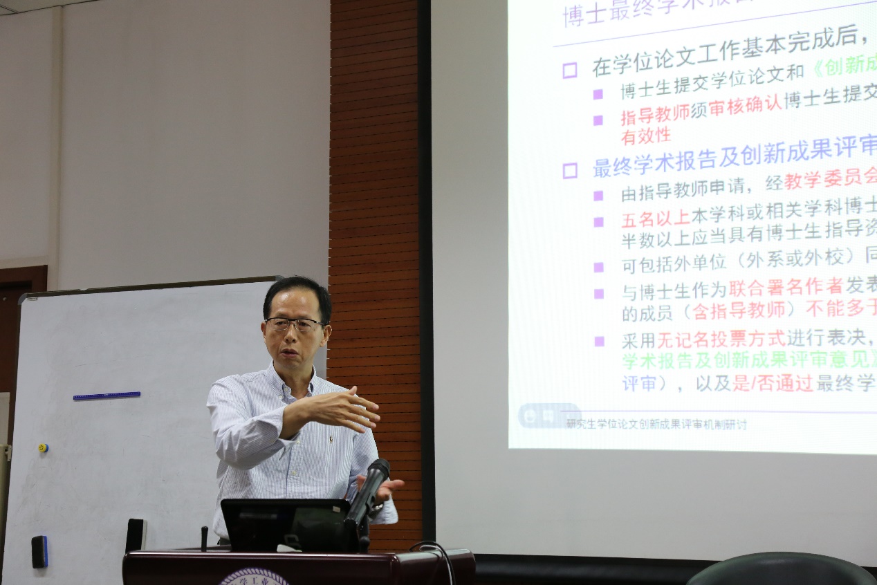 研讨会围绕“创新成果评审机制”及“学位论文质量全过程管理”两个主题展开。与会教师重点围绕博士学位论文创新成果评审机制的完善、博资考中课程考试与科研能力考核的改进、博士学位论文培养委员会制度的落实、多种不同类型学位项目共存情况下各硕士学位项目论文的指导与评审标准一致性等议题展开了热烈讨论,为更科学、更严格地进行评审和管理,创造健康的学术生态建言献策,并取得了诸多共识。