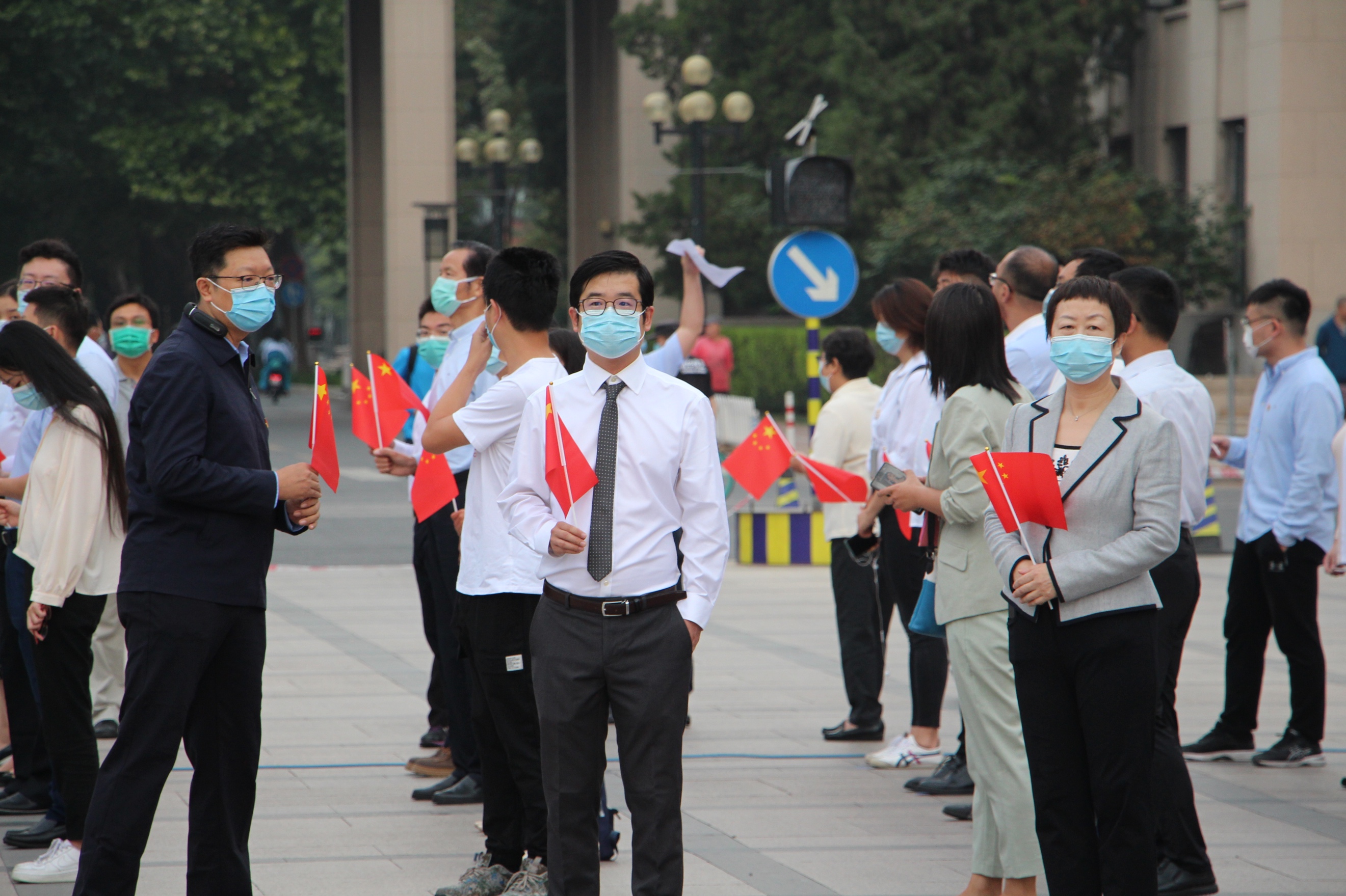 抗疫一线科研人员代表参加升旗仪式