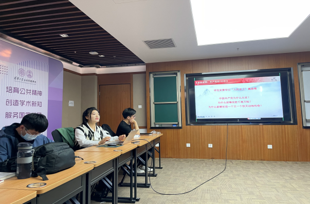 多渠道宣讲引领理论学习。支部将党小组与班级讲师支队结合,在组织生活中各党小组讲师围绕《中国共产党简史》等书籍的特定章节开展学习和宣讲;支部讲师将专业所学与中国共产党人精神谱系相结合进行宣讲,使党史学习与专业知识有机结合;支部还积极邀请学院江小涓、彭宗超、胡鞍钢、周绍杰等老师为支部作党史学习教育讲座,开展“师生党支部共建”,提升支部成员理论水平。一年来,支部在宣讲中打磨出多个党史品牌宣讲题目,主动走到校内外开展党史宣讲。