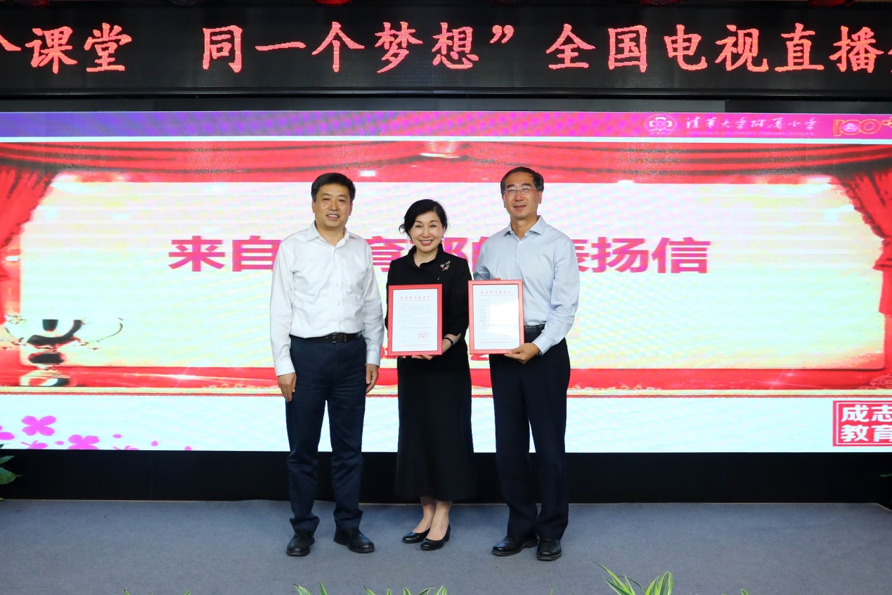吕玉刚在讲话中表示,清华附小以高度的政治责任感和历史使命感,承担了教育部组织的中国教育电视台“同上一堂课”直播课小学阶段2020年春季学期整学期的全部课程,为全国亿万小学生提供了优质的教育资源,在社会上引起强烈反响,得到高度评价,为抗疫后方的全国基础教育作出了重大贡献。