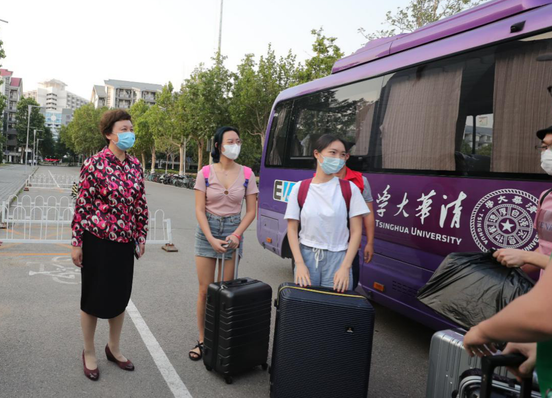 初夏款款至,莘莘学子归。随着第一辆接站的校车缓缓驶入东北门,3位返校同学终于回到了思念已久的清华园。