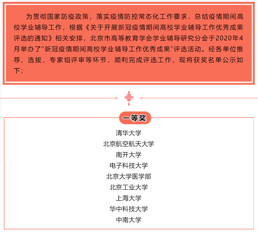 “新冠疫情期间高校学业辅导工作优秀成果”获奖名单公示