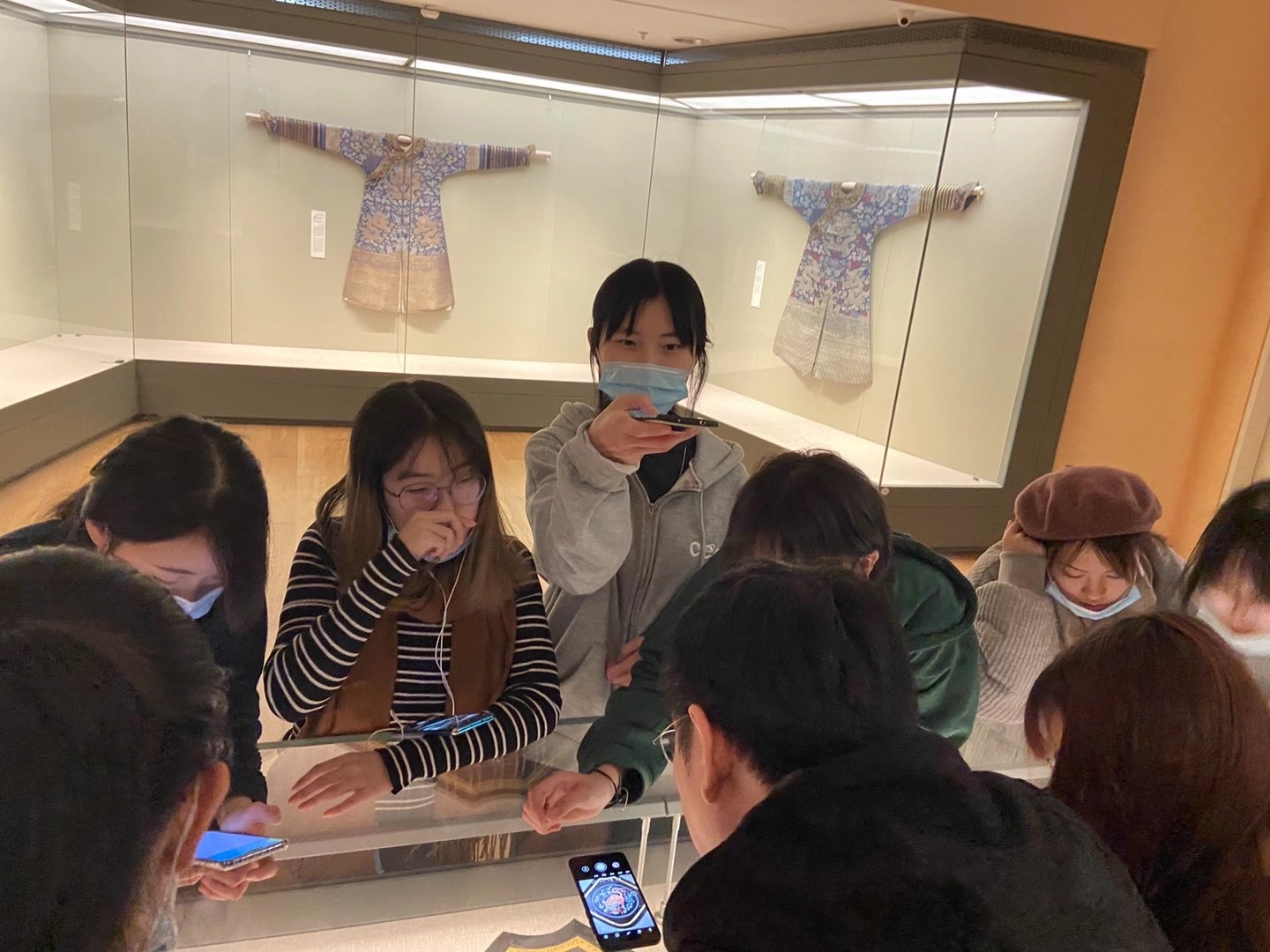 贾玺增主讲的“中外染织纹样史”课程教学突出研究性教学方法,与同学的互动性强,延展性强。理论与实践融合,充分利用新媒体表现服饰之美,丰富“馆”“展”“陈”形式,引导学生去关注和了解中国古代服饰文化,开辟了课堂教学与学生的互动性,强调学习过程的多面性与多元化,通过新媒体技术将“展”“演”与“学习互动”有机结合,让传统纹样以全新的面貌“活起来”,带给学生们不一样的视听感受,借助裸眼3D技术、VR穿戴设备,让学生们接受多维度、多渠道的教学内容信息,获得沉浸式的感官体验。