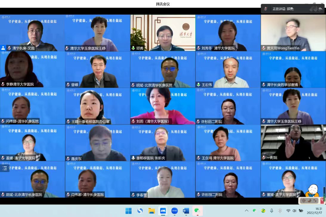 最后,邱勇特别请参会代表向各医院全体医务工作者转达学校的问候和关心。邱勇表示,学校将始终把师生员工的生命安全和身体健康放在首位,把守护好老同志的生命健康作为当前疫情防控工作的重中之重。任何时候,清华人永远在一起。希望大家统一思想、坚定信心、咬紧牙关、克服困难,艰难时刻终将过去,我们一定能赢得疫情防控的全面胜利。
