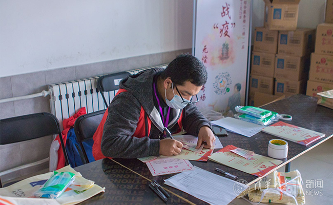 来自新疆喀什的化工系2018级本科生库尔班是参与本次献血现场服务的志愿者,进入清华后库尔班已经参加过两次无偿献血,虽然此次因为献血间隔时间太短不满足要求而未能献血,但也积极参与到志愿服务中。他在献血志愿者的工作中也体会到了助力战“疫”的责任和帮助别人的快乐。库尔班在写给武汉战“疫”前线医务人员的明信片上写到:“时间不会因灾难而止步,江河不会因灾难而倒流。同样,14亿中华儿女更不会因疫情而吓倒,相信只要我们万众一心,共同战‘疫’,一定会取得疫情防控阻击战的胜利,共同拥抱春暖花开。加油武汉,加油中国。”