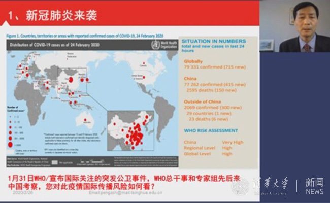 围绕这些问题,彭宗超教授在屏幕上对照课件侃侃而谈,梳理疫情发生以来党中央的决策部署,列举疫情严重地区及相关部门的各项行动,介绍我国突发急性传染病防控机制体制和公共卫生管理体系,剖析当前突发公共卫生事件面临的形势与挑战……