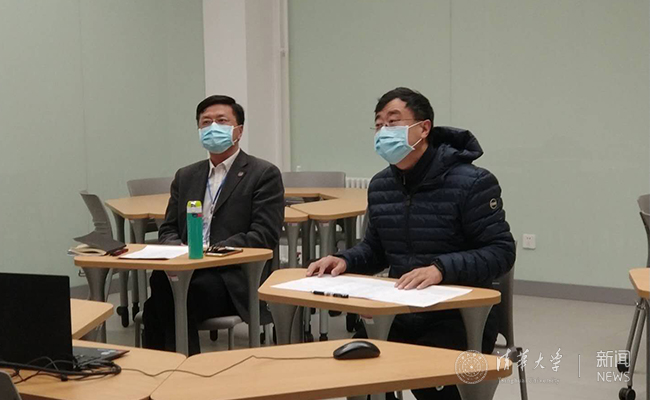 杨斌和周杰在疫情防控期间教学指挥中心参加研讨会