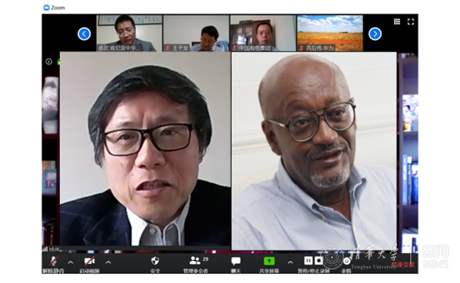 分享会中,魏来介绍了应用大数据、物联网及人工智能技术,紧急研发出居民个人自测评估和社区疫情智能防控等8项新产品为一体的智能发明和应用。张林琦分享了从康复患者身上找到高效抗体,进行大规模培养并应用到动物实验和人体应用的科研突破。景军总结了我国抗疫的重点经验,分享了多源预警机制的重要性等研究和疫情与非洲新冠病例和医疗资源的匹配分析,并介绍了我校国际公共卫生硕士项目毕业生投身非洲疫情防控一线工作的贡献。彭宗超分享了关于疫情防控的政策研究,强调应对及时和应对及早的重要性,提出非洲各国领导层应重视各方面风险,做好社区和企业的防控措施。四达时代公司分享了为非洲抗疫所做的工作,呼吁以中非领导力发展中心为平台为非洲贡献力量。云南沃森生物技术公司分享了非洲传染病预防和疫苗信息。非洲同学代表、新华社主任编辑卢朵宝分享了中非舆情的双情境分析。