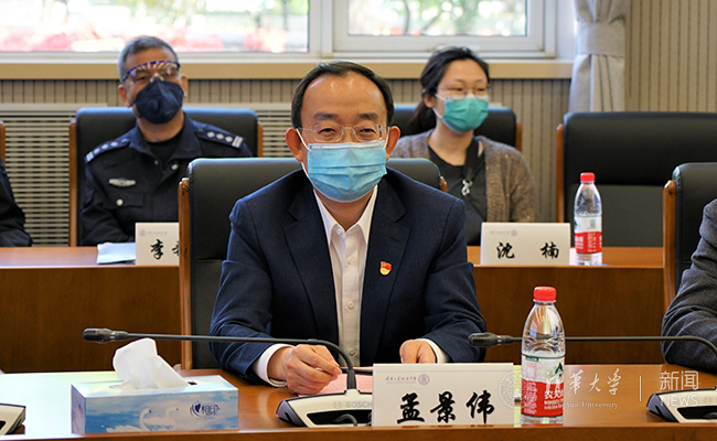 清华新闻网4月23日电 4月20日上午,由海淀区区委副书记孟景伟带队,北京市教委调研员史志民,海淀区委办公室副主任肖瑶,清华园街道党委书记高斌,海淀区教工委副书记李航、教工委组织科科长胡剑光,区纪委监委驻区卫健委纪检监察组组长李静,以及北京市公安局海淀分局、消防支队、交通支队、清华园街道、中关村派出所、海淀区卫生健康监督所、疾控中心、上地学区的相关负责人到清华附中进行2020年春季学期试开学教育教学条件评估检查调研。清华附中校长王殿军、党委书记方妍及全体领导班子和相关工作人员陪同调研检查。