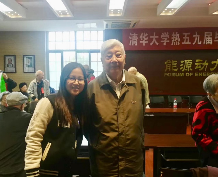 校庆108周年时,高索芬作为院系志愿者与过增元院士的合影。