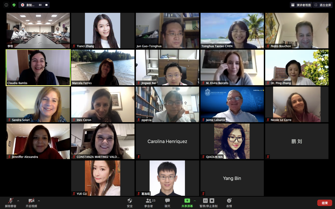 在讨论环节,针对智方提出的快速检测等方面的问题,清华长庚医院的专家们进行了详细解答。克劳迪∙班布斯(Claudia Bambs)教授对长庚专家们的无私分享和耐心答疑表示感谢,并希望进一步向长庚团队学习经验。陈涛涛表示,清华团队高度重视智利同事的意见和问题,愿意积极推进双方在科研抗疫合作中的深入交流。