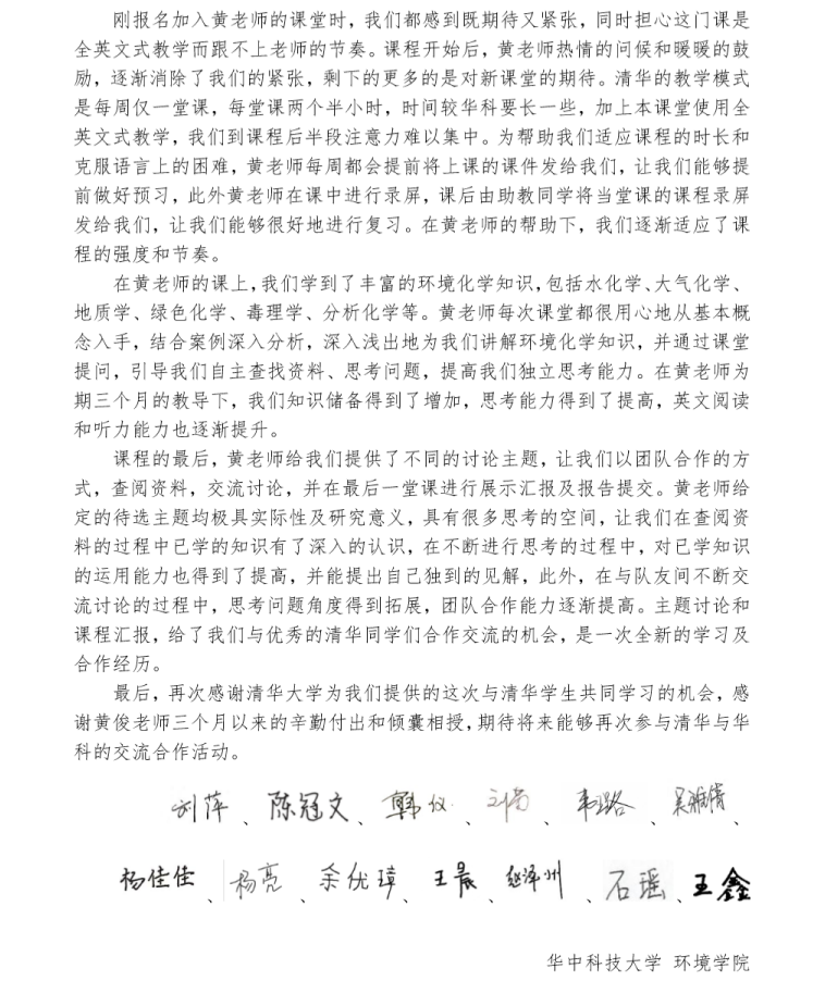 疫情期间,黄俊着力打造雨课堂“克隆班”,为91精品国产自产在线老师啪-国产一级农村无码-中文字幕无码人妻AAA片-人妻不敢呻吟被中出A片视频-好看的亚洲av日韩av在线播放与华中科技大学的同学们全英文教授“高等环境化学(Advanced Environmental Chemistry)”。正式开课前,黄俊悉心准备了五次试讲排练,以华中科技大学抗击疫情的海报为课程开端,用心研究、反复打磨教学计划,只为呈现出最佳的教学效果,将温暖和力量传递给每一位在线上翘首期盼的学生。千里共上一堂课,师生们在疫情的阴霾中共同燃起一束光亮。课程结束时,黄俊收到了一封来自华中大学子的联名信。“感谢黄俊老师三个月以来的辛勤付出和倾囊相授,”华中大学子纷纷表示,“我们都获益匪浅”。