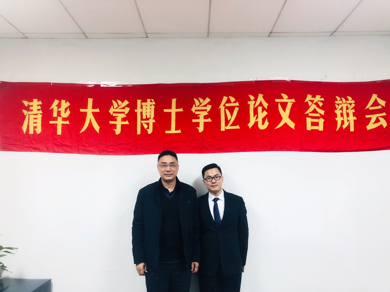 梁斌(左)和他的学生在论文答辩会上