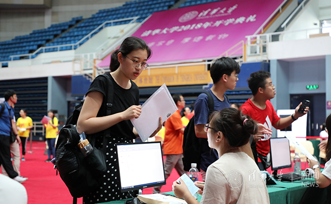 今天的清华园到处洋溢着青春的气息。随处可见的双语展板、道旗、条幅向来自五湖四海的同学们致以最诚挚的问候。在院系迎新点处,学长学姐们耐心地为新同学答疑解惑。新清华学堂前,“清华有你,芳华共启”的立体标语引人注目,新生们纷纷与之合影,在清新靓丽的清华园里开启属于自己的芳华岁月。