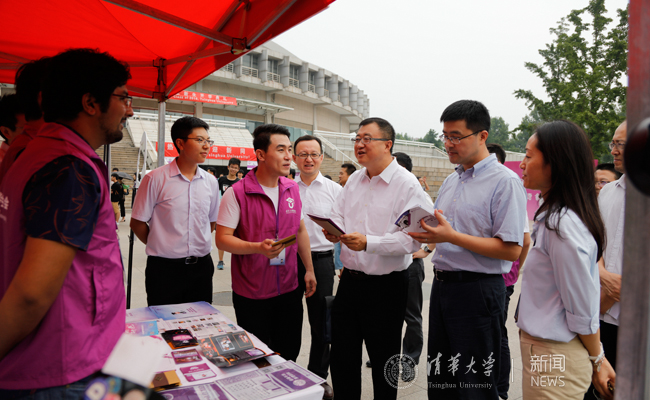 在环境学院迎新点,陈旭详细询问研究生新生报到情况,并与环境学院博士新生伍明进行了亲切交流。伍明是清华化工系校友,在深圳创业,如今通过清华今年新增的创新领军工程博士项目的申请选拔,回母校环境学院攻读博士学位。陈旭详细询问伍明的创业情况并表示,有一定的社会经验后再回学校读书,将会有不同的体验和更多的收获。