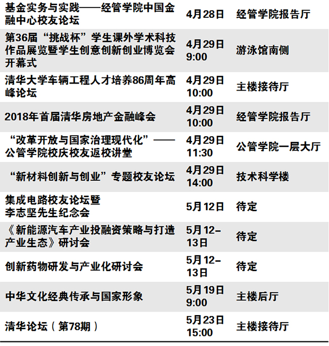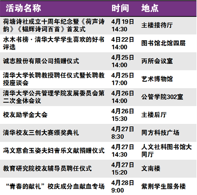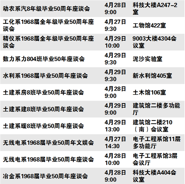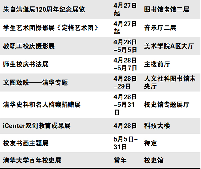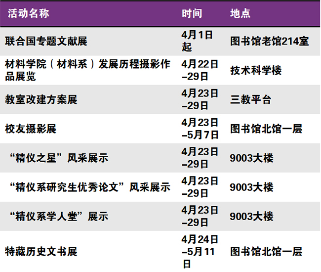 秩年、学术、体育、展览、校园开放、艺术、院系校友活动