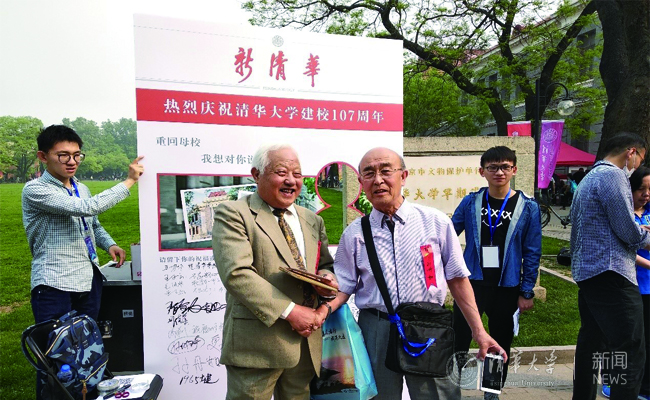 清华新闻网4月29日电(学生记者  张北辰)4月29日上午,美丽的清华园处处洋溢着107岁生日的喜悦氛围。大礼堂,二校门,清华学堂,日晷这些老建筑旁热闹极了,来自五湖四海的校友们拍照留念,热情攀谈,驻足追忆自己的校园时光。