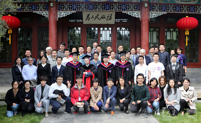 参加学位授予仪式的师生与塞尔教授合影留念。
