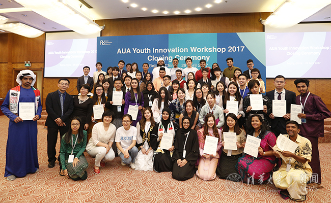 4月29日下午,在亚洲大学联盟青年创新工作坊闭幕式上,学员们向大学校长和嘉宾们展示了个性化、创新型的小组成果。