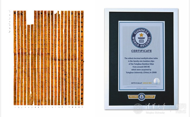 清华简《算表》获吉尼斯世界纪录认证。