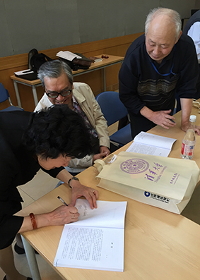 同学见面分外亲。老校友们互相拥抱、亲切合影,感慨当年一同度过的青葱岁月。在聚会现场,每人领取专属提包,里面有提前准备的聚会相关材料。为了更好地铭记同学情谊,纷纷拿出纪念册请老同学在上面签字作为留念。大家在感叹时光流逝的同时,更加珍惜跨越半个世纪的情谊。