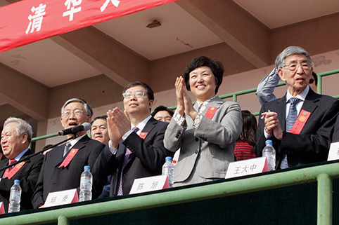 校领导陈旭、程建平、谢维和、韩景阳、史宗恺、邓卫、姜胜耀、薛其坤、吉俊民、杨斌,校长助理尤政,学校老领导方惠坚、王大中、顾秉林、王明旨、张思敬、张慕葏、黄圣伦、倪维斗、胡显章、朱爱菁、叶宏开、张再兴、郑燕康、康克军,学校相关部处、参赛院系负责人,清华师生代表,返校校友们和北京优秀中学生代表也出席了开幕式。开幕式由体育部主任刘波主持。