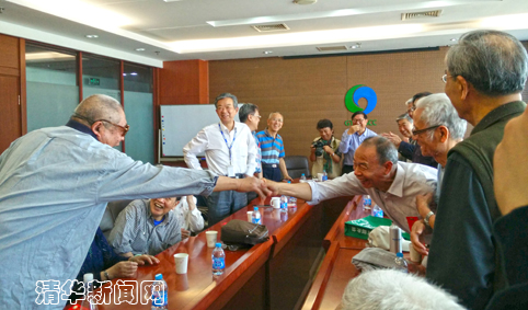 上午10时左右,校友徐竹生先生来到会场。毕业50年来,他与很多同学就再也没有见过面。老先生虽然阔别多年,却依然能够熟练地叫出大多数同学的名字,热情地拿出手机给他们拍照,并与他们一一握手。就座以后,他聊起自己的健康,提到自己曾患帕金森症,却奇迹般的几乎痊愈了,老同学高兴地表示祝贺。