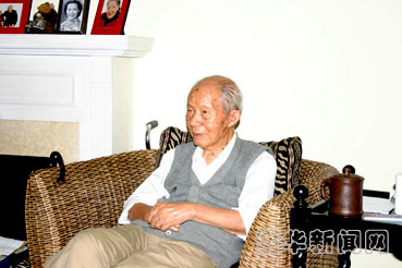 图为93岁高龄的著名水利水电工程专家、中国科学院院士、中国工程院院士张光斗先生在家中客厅藤椅上认真收看动员大会的实况。(记者 魏磊)