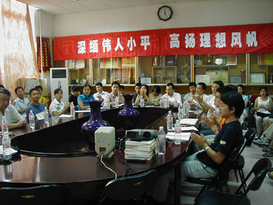 下午, 我校团委举行了纪念邓小平同志诞辰100周年座谈会,全校各院系同学代表参加了座谈会。座谈会上,既有对于邓小平丰功伟绩的追忆,也有对于邓小平思想境界和人格魅力的由衷敬佩,既有TMS协会会长、求是学会会长对于邓小平理论的认识,也有来自深圳特区和邓小平家乡——广安的新生代表的切身感受,部分学生干部和辅导员还谈及了在实际工作中如何运用邓小平理论,发扬邓小平同志的工作作风。