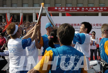 6月9日,清华学子夹道欢迎奥运圣火车队。当日,北京举行雅典奥运会火炬传递活动。