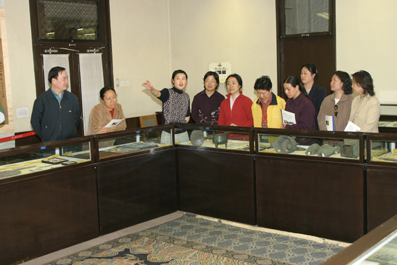 在展品中最引人注目的是一件清乾隆时期的缂丝佛像织造,幅宽4米,高6米,采用通经断纬织法,整幅织物图案清晰,平整华丽,虽然是平铺在地上,但仍给人以镂空之感,十分罕见。围绕着织画展出的是为此次展出而选取的100余件青铜器,玉器,骨器,书画,古钱,拓片等文物精品。其中最为珍贵的有17字铭文的小臣逋鼎、唐人写经卷子、明文徵明、董其昌的书法等。精选展出的30多部古籍,都是馆藏中版本及学术价值之最高者,其中包括刊刻年代最久远的宋版书及元版书。明清稿本中戴震的《续方言》、黄以周的《十翼后录》都具有很高的学术价值。在展柜左面的一套《大婚典礼红档》记录了清光绪皇帝大婚的全过程,具有极高的历史价值。