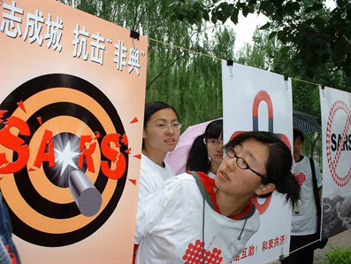 在淅淅沥沥的小雨中,举行了简短的展出仪式。许多同学冒雨驻足观看,津津有味地欣赏着充满艺术魅力的作品。这些作品艺术形式和表现手法都十分独特,从全民预防、全民抗击、团结就是力量、白衣天使的无私奉献、科学预防、相互关怀、战胜“非典”等角度,体现了全民抗击“非典”方方面面的内容。美术学院装潢系副主任吴冠英评价说,这些作品思维活跃,创意丰富。在一周的时间里,就能够完成有如此构思、创意以及最终的表现的作品是很难得的。染服系系主任田青说,此次展出的作品可谓百花齐放,不但主题突出,而且艺术性较强,在风格上既有传统韵味又有现代精神,既有写实也有抽象,既简洁大方也复杂多变,充分体现了专业院校的艺术水平。